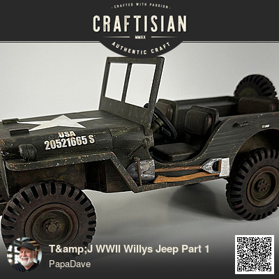 Hey everyone. As the fall closes in here north of the equator, I have started my annual shop work and I chose the T&J WWII Jeep as my next vict. . .ah, project. The plan from T&Y comes with both the Jeep and its trailer but I haven't decided if I will make the trailer. As you can judge from the photo, this is not a "naked" final project. Some plans just scream for paint treatment and since I was a kid, I loved the idea of model building and making the item seem as real as possible. The Jeep fell into that category and so I called on my past "weathering" chops for the finish. I was also lucky to find some 1:6 scale decals so I did not have to create the stencils and hand paint the markings. However, I did make sure that the markings were in line with 1942 's Army Regulation 850-5 that stipulated how vehicles were to be marked and what images should be used where.