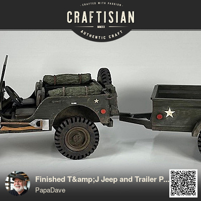 So the T&J Jeep and Trailer now go into the "Finished Project" book. As usual, the extra details added a lot of time and energy to the finished project but then again, I really have a great time doing them. I also made a couple of tarps for the Jeep. They can be seen on the initial photo for this post. Anyway, thanks for hanging in there on this project. Have a terrific day.