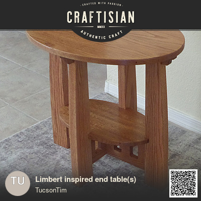 I've always admired the designs of Charles Limbert. I especialy like his double oval library table. I've wanted to build some version of that table for ages. Well, I finally got the opportunity when we rearranged our family room with some new theater seating. Suddenly, we needed a couple of end tables to compliment the new seating configuration. These Limbert inspired pieces are the result...