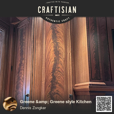 We finished this Kitchen up about 2 months ago. I made the Hood, Island, & Fireplace mantle,and turned 5 columns , There were 4 other craftsman from my business at Zongkers that worked along side me. They worked really hard and did a great job. The raised panels have Crotch Mahogany veneer, Quartered Sapele hardwood, & Gabon Ebony for the square buttons, corner splines, inlays on the hood system. Thank you for looking.