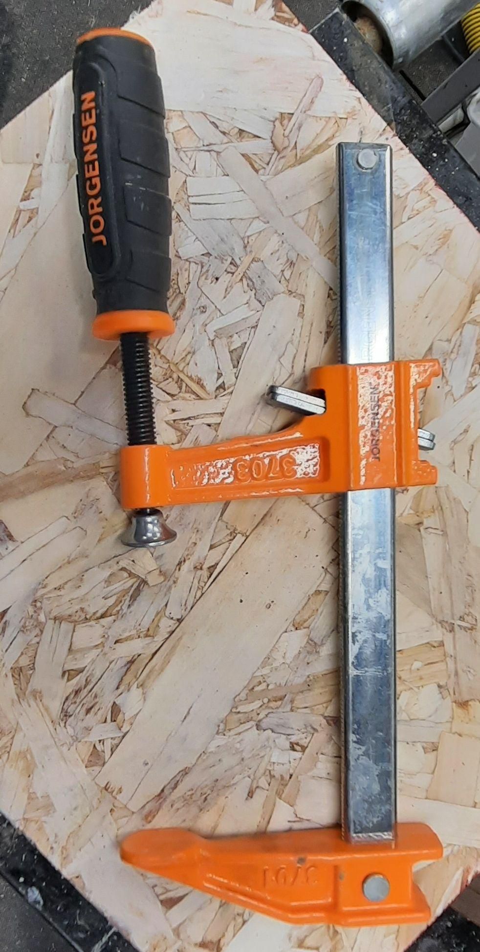 For this, all you need is a 6" or 12" F clamp. I sacrificed a Harbor Freight clamp