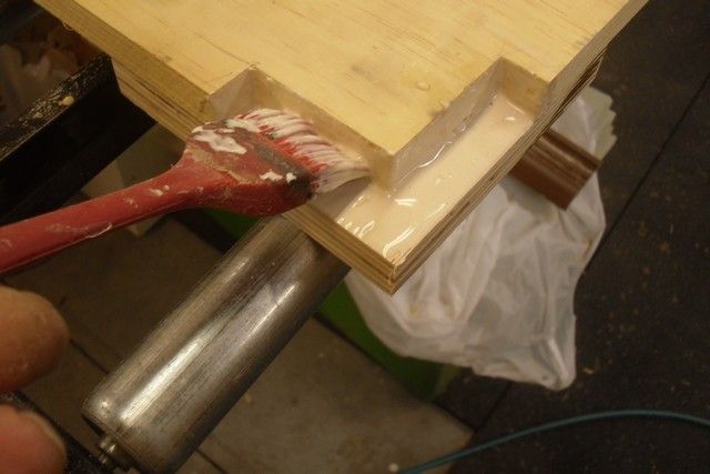 Because you should have significant glue squeeze out from installing the support blocks, do not delay too long installing the wheels before going to the next step.