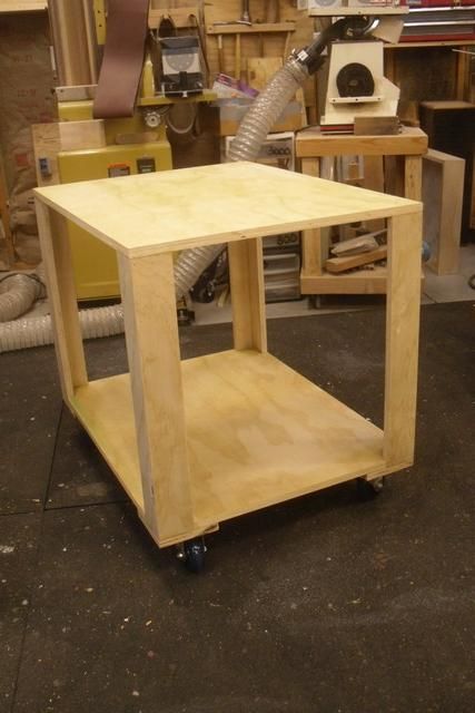 I have nine of these carts in my shop. Each is sized according to the use to which it was put. For example, a cart in the pictures measure about 24" wide by 48" long by 34" tall, the height of my table saw top. When not acting as a horizontal catch all surface, the cart supports full sheets of flat stock being cut on my table saw. Another cart houses serves as my router table and houses my Porter Cable 3-1/4 horse router, BadDog lift and Freud fence. Yet another, shorter version holds my planer. Then there is my 1" belt sander, my oscillating sander, my four wheel grinder, over-arm pin router and so on.