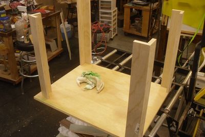 Now we have to determine the length of the four legs/supports, which, simply, requires you subtract the thickness of the top and the plate on which the wheels/casters will mount. If you were using 3/4" plywood, that would be 1-1/2". That would leave you a leg/support height of 34".