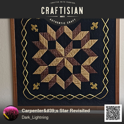 Added a Frame made from ribbon sapele for the quilt my wife made for me (Crossover Project). I'll never make a frame this large with miter joints again. I ended up using inside corner angle brackets to get it to hold together, and I'm not at all happy with the joints.