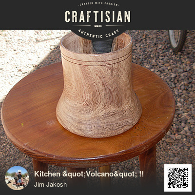 This started as a round mesquite branch with a crotch attached that I was given to see what could be make out of it . I cut the straight part free and rounded it up on the lathe and found it had this punky stripe in it. I cut out the punky stuff with a die grinder and filled it with black epoxy ( had to build dam around it). Then I turned the shape and bored out the center and finished it with a 3 stage buff and wax. The black epoxy did not shine up very well with the Tripoli and white diamond. I'll take it home to be finished with my plastic buffing material and polish. Being that this was pretty green wood, I don't expect it to be round when I get to Michigan with it. It is 5 1/2" diameter at the base and 5 1/2" high.