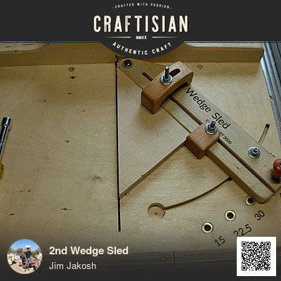 I made the rear hand rail split so the left side can be removed if longer boards are used to cut the wedges. The wedges shown are set up pieces to dial in the angles for each position. They were checked using a Wixie box. When the angle was obtained, the pin location was transferred from the fence to the sled. The sled, fence and rails are made from Baltic birch. The clamp and end stop are made from maple and the handle on the locator pin is female box elder The following are some process shots taken during the build. I used a trim router to make the circular T slot: Cheers, Jim