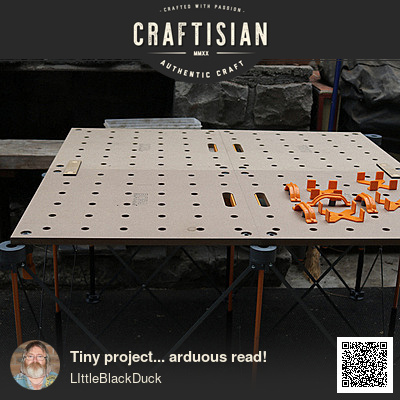 Unfortunately I couldn't find the traditional red and white table top cover, so I had to settle for a conservative "waterproof synthetic", to keep the crap off... only the foreign avian gems, I'm just hoping I master my fear of the Shaper and get to use my new workbench after the finger heals.