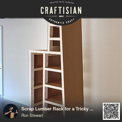 Seven horizontal shelves hold smaller, shorter (up to 24”) scraps.
