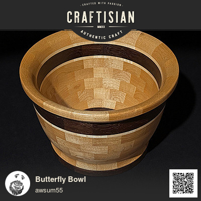 Great segmented bowl. If course the butterfly draws attention and is a great detail, more than a detail. Also like the use of the maple to accent the we get ring. Great job.